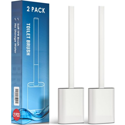 2 Pack Toilet Brush and Holder Set, Silicone Toilet Brush with TPR Bristles, Wall Mounted and Standing