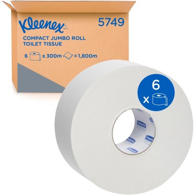 KLEENEX® Compact Jumbo Roll Toilet Tissue (5749), 2 ply, Jumbo Toilet Roll, 6 Rolls/Case, 300m / Roll (1,800m)