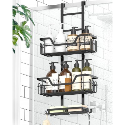 Gabeeriso Over The Door Shower Caddy Hanging, Rustproof Bathroom Caddy Shower Shelf with 16 Hooks