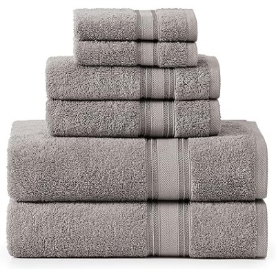 LANE LINEN Luxury Bath Towels Set - 6 Piece 100% Cotton Towel Super Soft 2 Hand Wash Cloths Space Grey