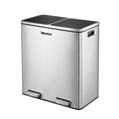 Maxkon 60L Foot Pedal Bin Stainless Steel Rubbish Dustbin Dual Compartment Recycle Kitchen Trash Can Sliver