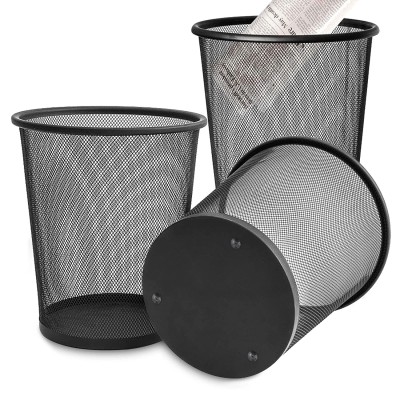 PENGQIMM 3 Pack Mesh Waste Paper Bin, 12 Litre, Black, Metal, Round, Open-Top, Lightweight, Smooth Finish