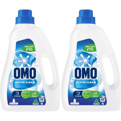 OMO Active Clean Front & Top Loader Laundry Liquid 2 L (Pack of 2)